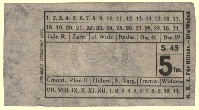 Bilet jednorazowy K.E.Ł. Okres I Wojny Światowej