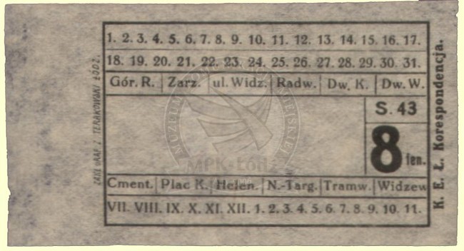 Bilet jednorazowy K.E.Ł. Okres I Wojny Światowej
