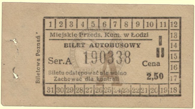 Bilet jednorazowy autobusowy, okres do 1960 roku