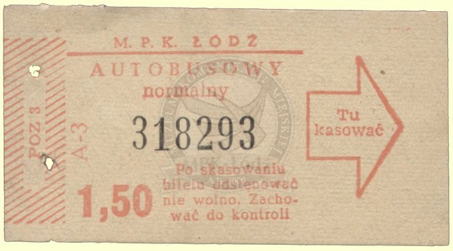 Bilet jednorazowy autobusowy normalny w obiegu w latach 1970 - 1980.