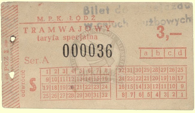 Bilet tramwajowy specjalny na linie podmiejskie w obiegu w latach 1970 - 1980.