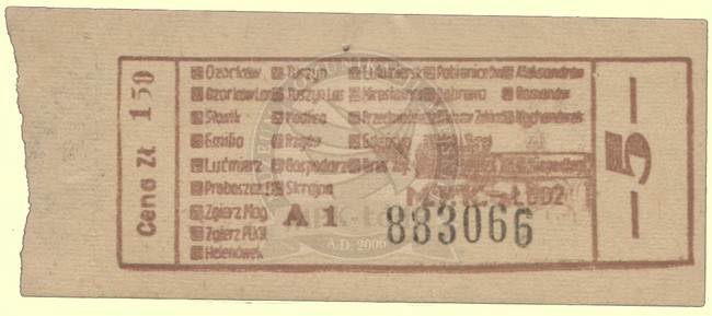 Bilet jednorazowy na linie podmiejskie w obiegu w latach 1955 - 1970.