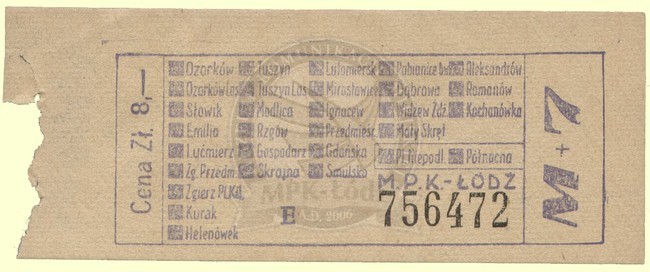Bilet jednorazowy na linie podmiejskie w obiegu w latach 1955 - 1970.