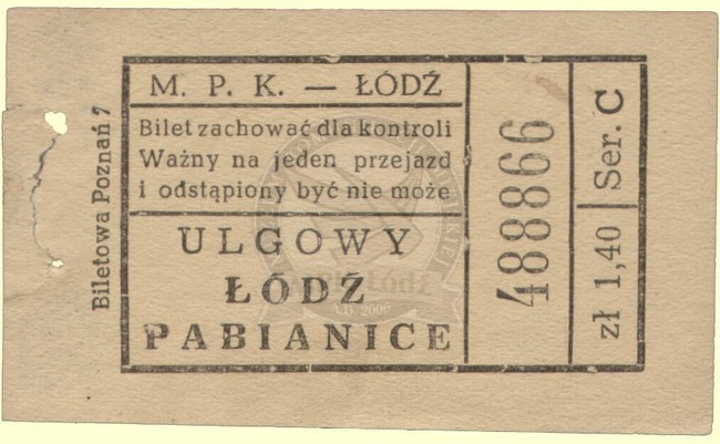 Bilet jednorazowy na linie podmiejskie w obiegu w latach 1955 - 1970.