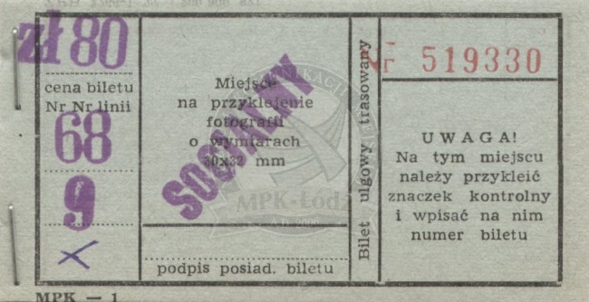 Bilet szkolny miesięczny ulgowy na dwie linie trakcji tramwajowej lub autobusowej normalnej