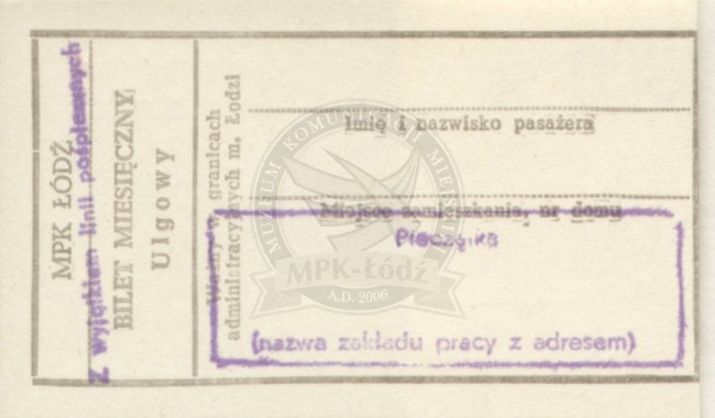 Bilet pracowniczy miesięczny ulgowy sieciowy ważny na całą sieć normalną