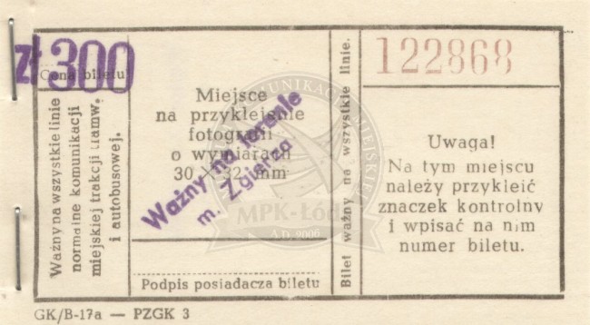 Bilet pracowniczy miesięczny ulgowy sieciowy ważny na całą sieć normalną na terenie miasta Zgierz