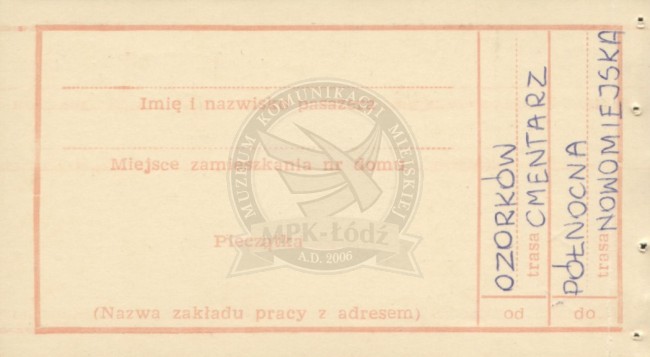 Bilet pracowniczy miesięczny na jedną linię podmiejską - Łódź - Ozorków