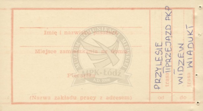 Bilet pracowniczy miesięczny na jedną linię podmiejską - Łódź - Przylesie