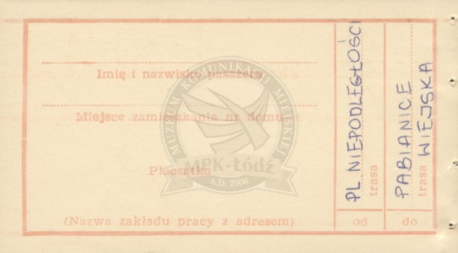 Bilet pracowniczy miesięczny na jedną linię podmiejską - Łódź - Pabianice