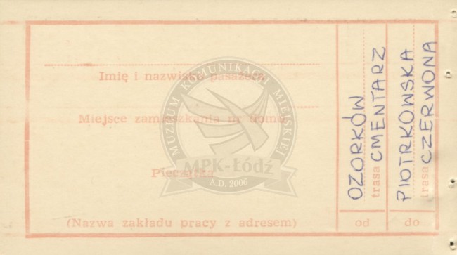 | 0526 |90 mm x 50 mm / druga strona biletu /