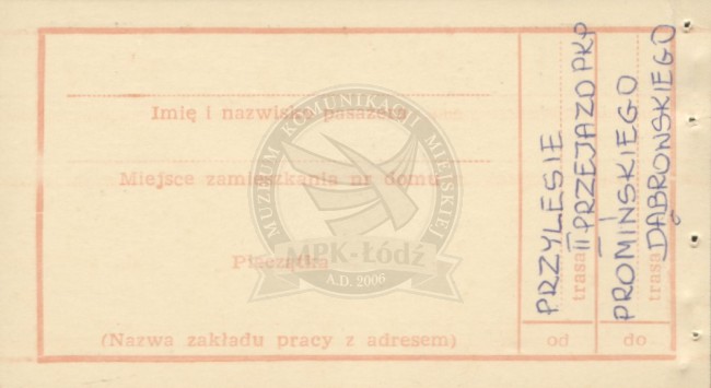 | 0531 |90 mm x 50 mm / druga strona biletu /