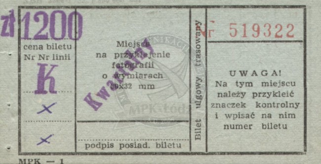 Bilet kwartalny imienny ważny na jedną linię komunikacji autobusowej pośpiesznej