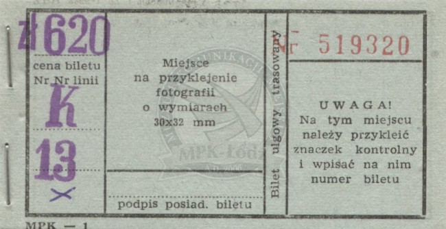 Bilet miesięczny imienny ważny na jedną linię autobusową pośpieszną i jedną linię normalną autobusową lub tramwajową