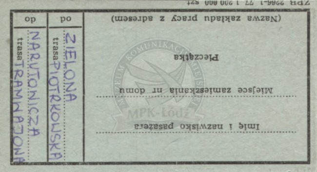 | 0536 |91 mm x 47 mm / druga strona biletu /