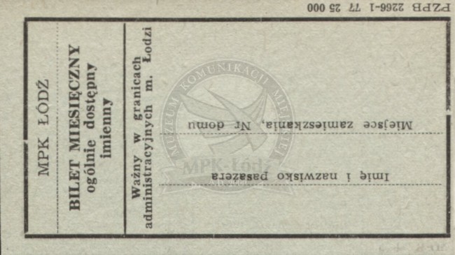 Bilet miesięczny imienny ważny na normalnych liniach tramwajowych i autobusowych na terenie jednego miasta