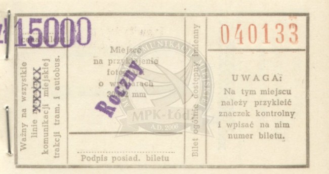 Bilet roczny imienny na wszystkie linie normalne i pośpieszne tramwajowe i autobusowe na terenie całej sieci MPK w województwie