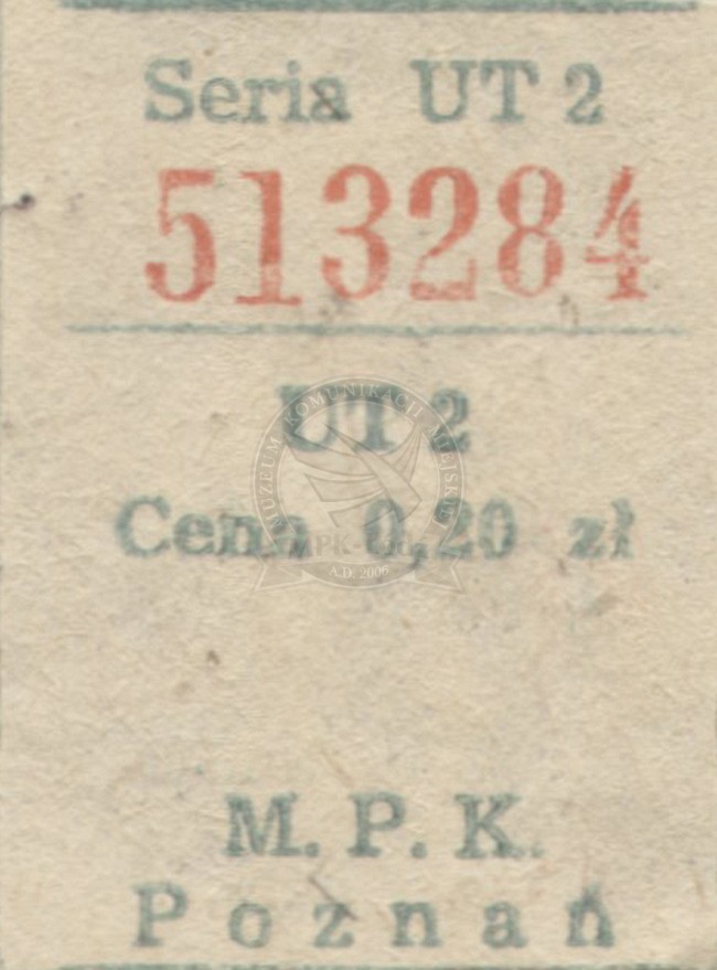 Bilet ulgowy z automatu typu "KRAB" z nadrukiem "MPK Poznań" Po raz pierwszy takie automaty zainstalowano na linii tramwajowej nr "12" 20 lutego 1966 roku.