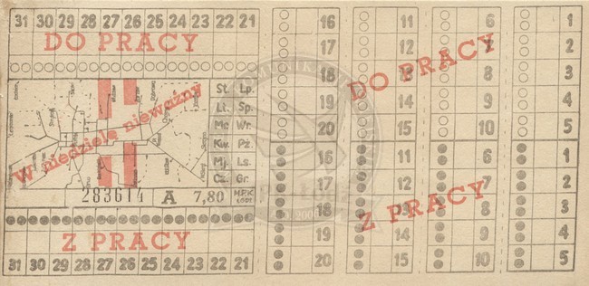 Abonament miesięczny na dojazdy do i z pracy, ważny tylko w dni robocze z prawem dwukrotnego przesiadania.