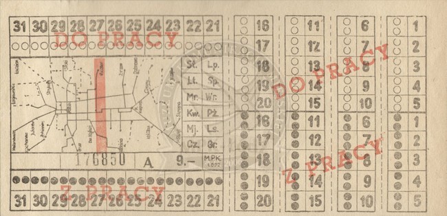 Abonament miesięczny na dojazdy do i z pracy, ważny we wszystkie dni tygodnia z prawem jednokrotnego przesiadania.