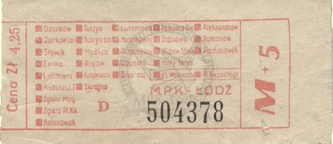 Bilet normalny jednorazowy na linię podmiejską do sprzedaży przez konduktora ważny na strefę miejską i pięć podmiejskich - cena: 4,25 zł.