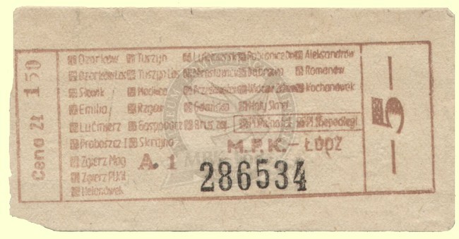 Bilet normalny jednorazowy na linię podmiejską do sprzedaży przez konduktora ważny na pięć stref podmiejskich - cena: 1,50 zł.