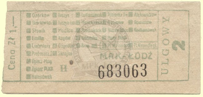 Bilet ulgowy jednorazowy na linię podmiejską do sprzedaży przez konduktora ważny na dwie strefy podmiejskie - cena: 1 zł.