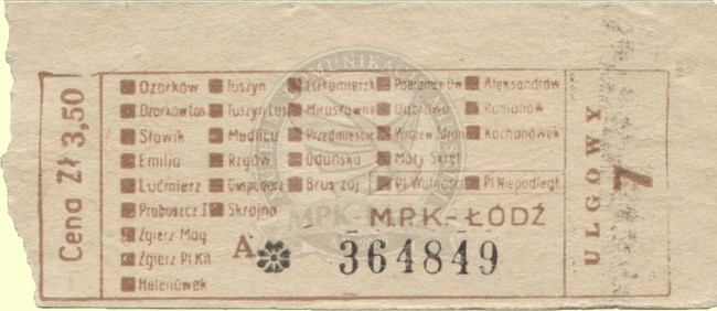 Bilet ulgowy jednorazowy na linię podmiejską do sprzedaży przez konduktora ważny na siedem stref podmiejskich - cena: 3,50 zł.