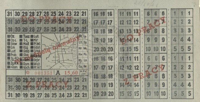 Abonament pracowniczy miesięczny na dojazdy do i z pracy ważny tylko w dni robocze uprawniający do dwóch przesiadek na liniach miejskich m. Łodzi na strefę miejską i cztery podmiejskie - cena: 15,60 zł.