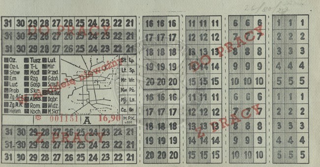 Abonament pracowniczy miesięczny na dojazdy do i z pracy ważny tylko w dni robocze uprawniający do dwóch przesiadek na liniach miejskich m. Łodzi na strefę miejską i pięć podmiejskich - cena: 16,90 zł.
