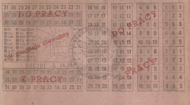 Abonament pracowniczy miesięczny na dojazdy do i z pracy ważny tylko w dni robocze uprawniający do dwóch przesiadek na liniach miejskich m. Łodzi na strefę miejską i sześć podmiejskich - cena: 18,20 zł.