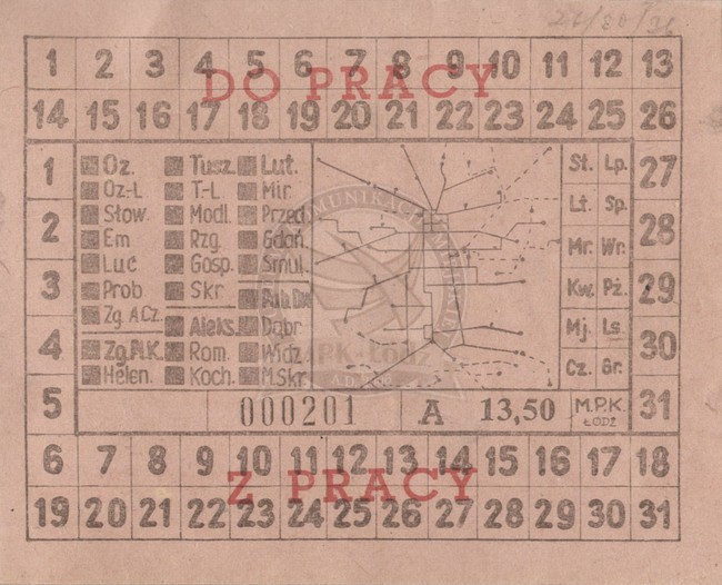 Abonament pracowniczy miesięczny na dojazdy do i z pracy ważny we wszystkie dni tygodnia bez prawa przesiadania, ważny na 5 stref podmiejskich - cena: 13,50 zł.