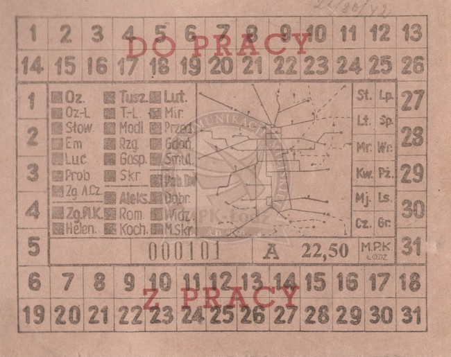 Abonament pracowniczy miesięczny na dojazdy do i z pracy ważny we wszystkie dni tygodnia bez prawa przesiadania, ważny na strefę miejską i 7 podmiejskich - cena: 22,50 zł.