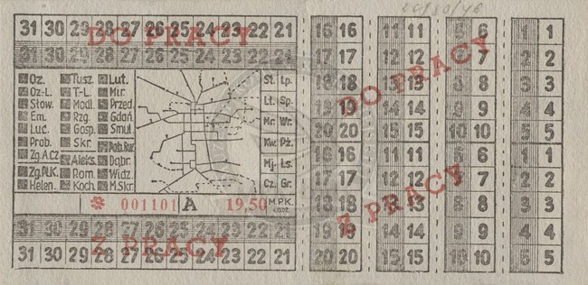Abonament pracowniczy miesięczny na dojazdy do i z pracy ważny we wszystkie dni tygodnia uprawniający do 1 przesiadki na liniach miejskich m. Łodzi i na 5 stref podmiejskich - cena: 19,50 zł.
