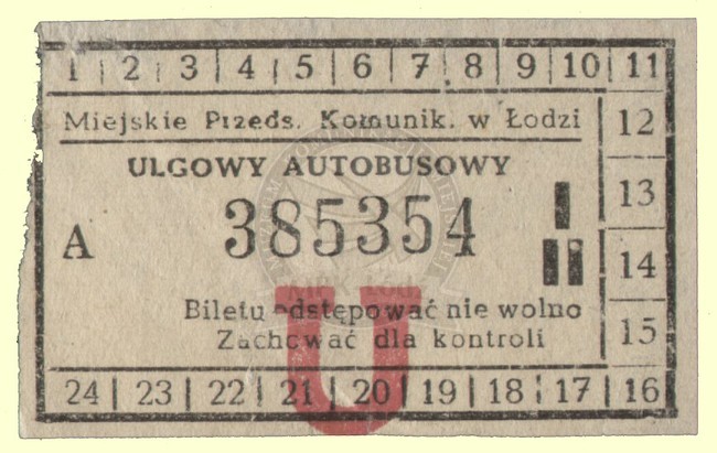 Bilet ulgowy autobusowy do sprzedaży odręcznej przez konduktora w cenie 0,15 zł.
