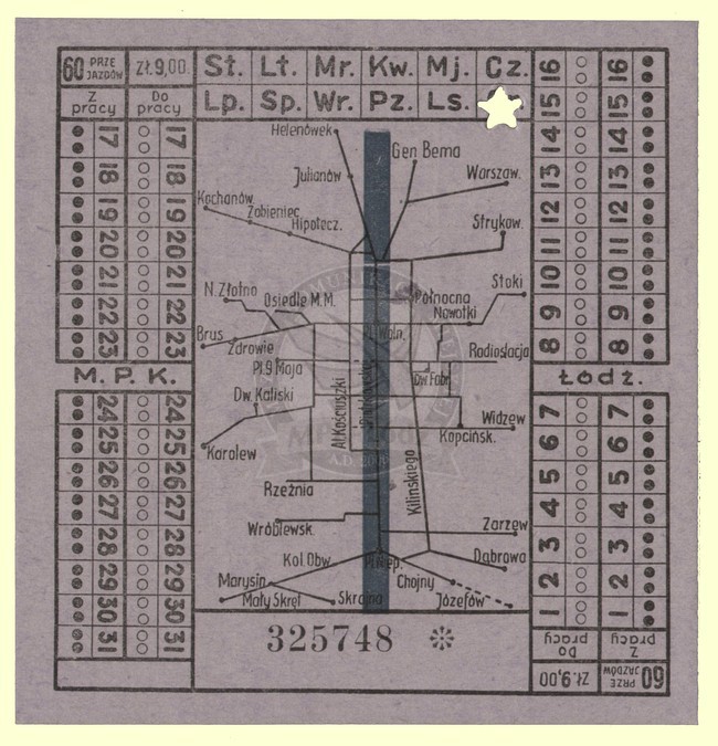 Bilet pracowniczy miesięczny 60 przejazdowy ważny we wszystkie dni tygodnia z prawem jednokrotnego przesiadania w cenie 9 zł.