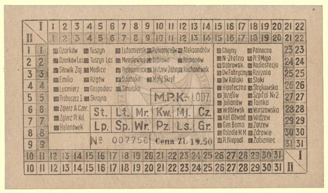 Bilet pracowniczy miesięczny na linie podmiejskie z prawem jednokrotnego przesiadania na linię miejską tramwajową lub autobusową. Bilet ważny na pięć stref poza granicami miasta z prawem przesiadania na linię miejską. Cena 19.50 zł