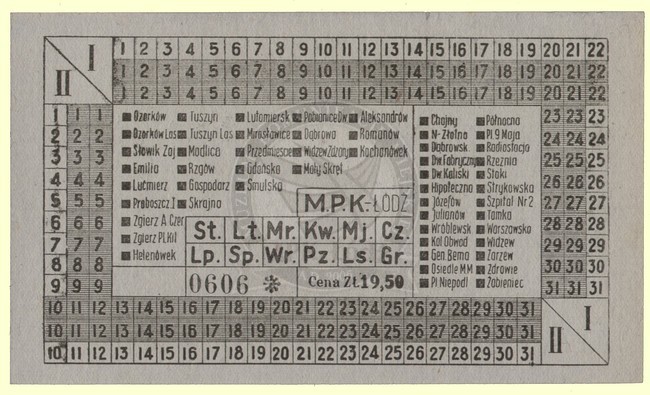 Bilet pracowniczy miesięczny na linie podmiejskie z prawem dwukrotnego przesiadania na linię miejską tramwajową lub autobusową. Bilet ważny na pięć stref poza granicami miasta z prawem przesiadania dwukrotnie na linię miejską. Cena 19.50 zł