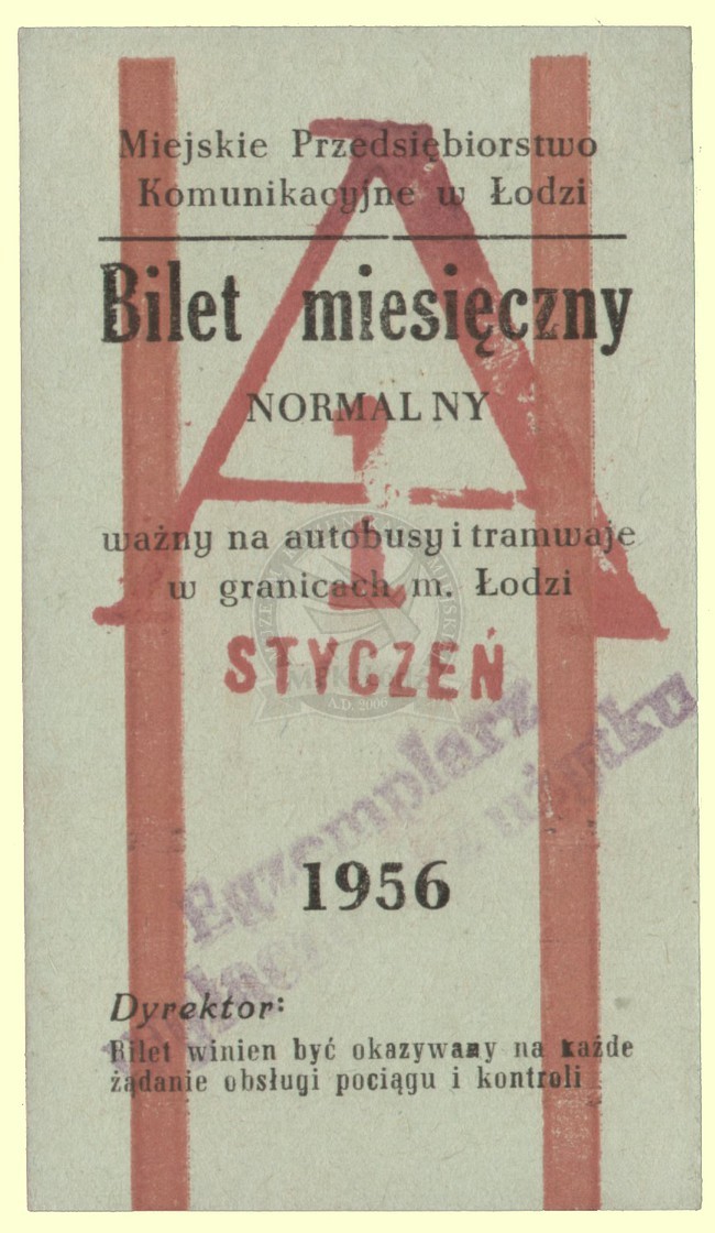 Bilet miesięczny imienny normalny ważny na linie tramwajowe i autobusowe w granicach Łodzi. Cena 90 zł