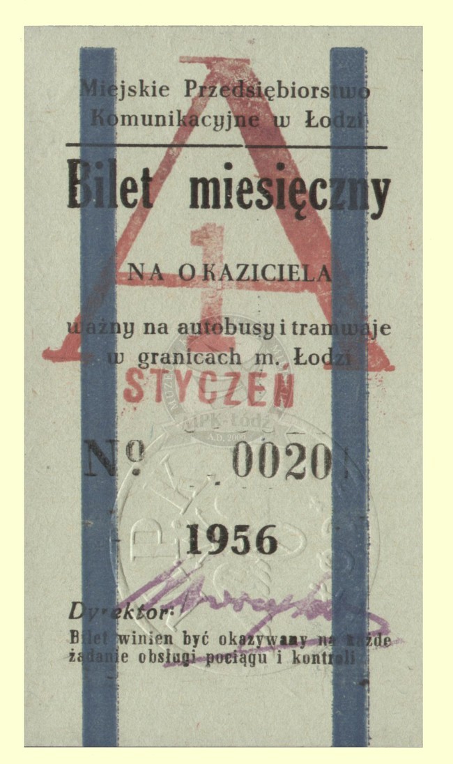 Bilet miesięczny na okaziciela ważny na linie tramwajowe i autobusowe w granicach Łodzi. Cena 150 zł