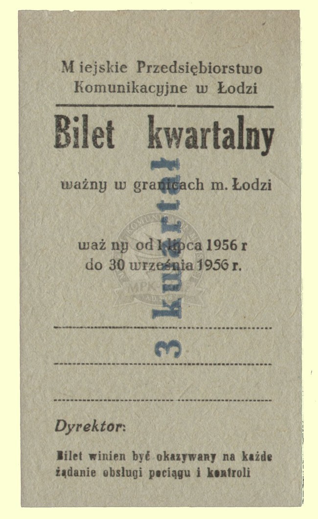 Bilet kwartalny ważny na linie tramwajowe w granicach miasta Łodzi.