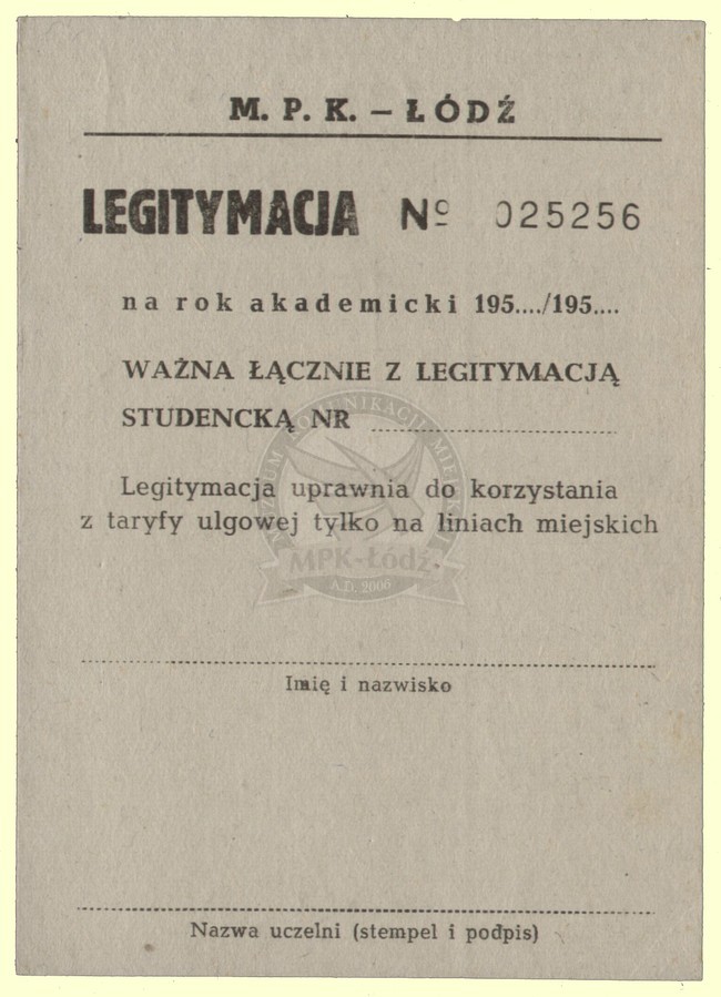 Legitymacja dla studentów uprawniająca do korzystania z taryfy ulgowej na liniach miejskich.