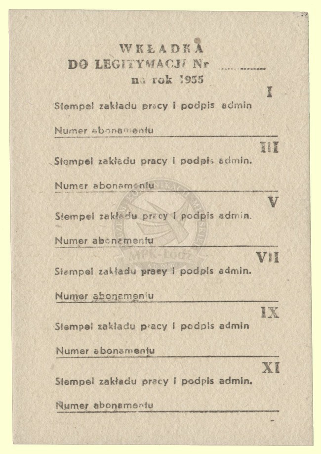 Wkładka do przedłużania ważności legitymacji uprawniającej do korzystania z taryfy ulgowej - na miesiące nieparzyste.